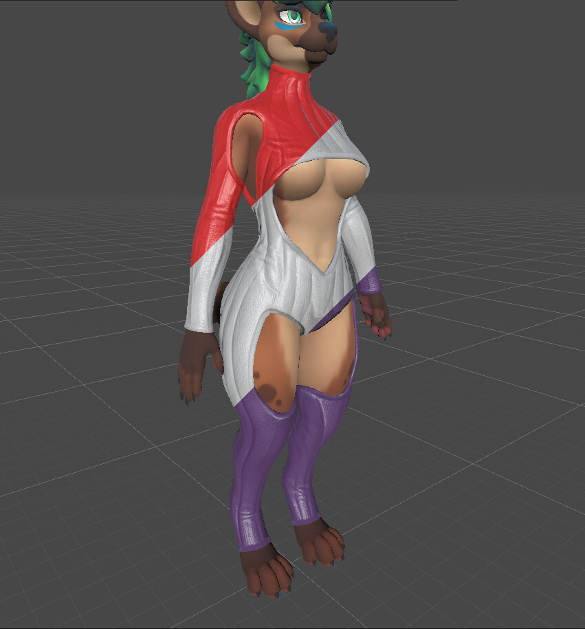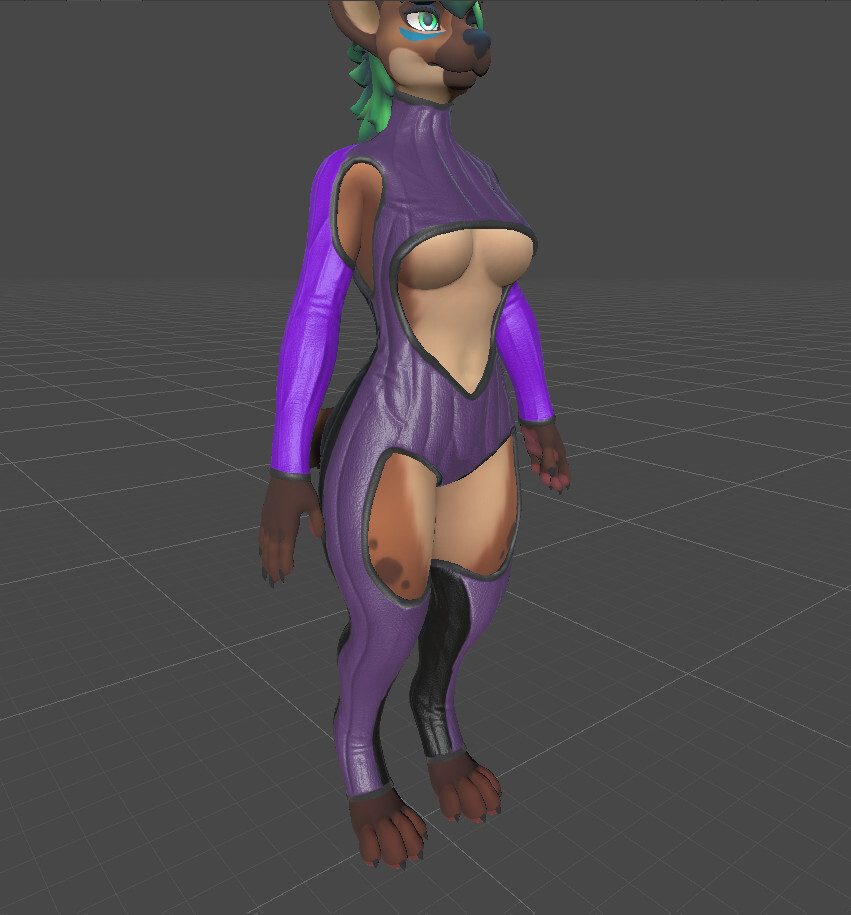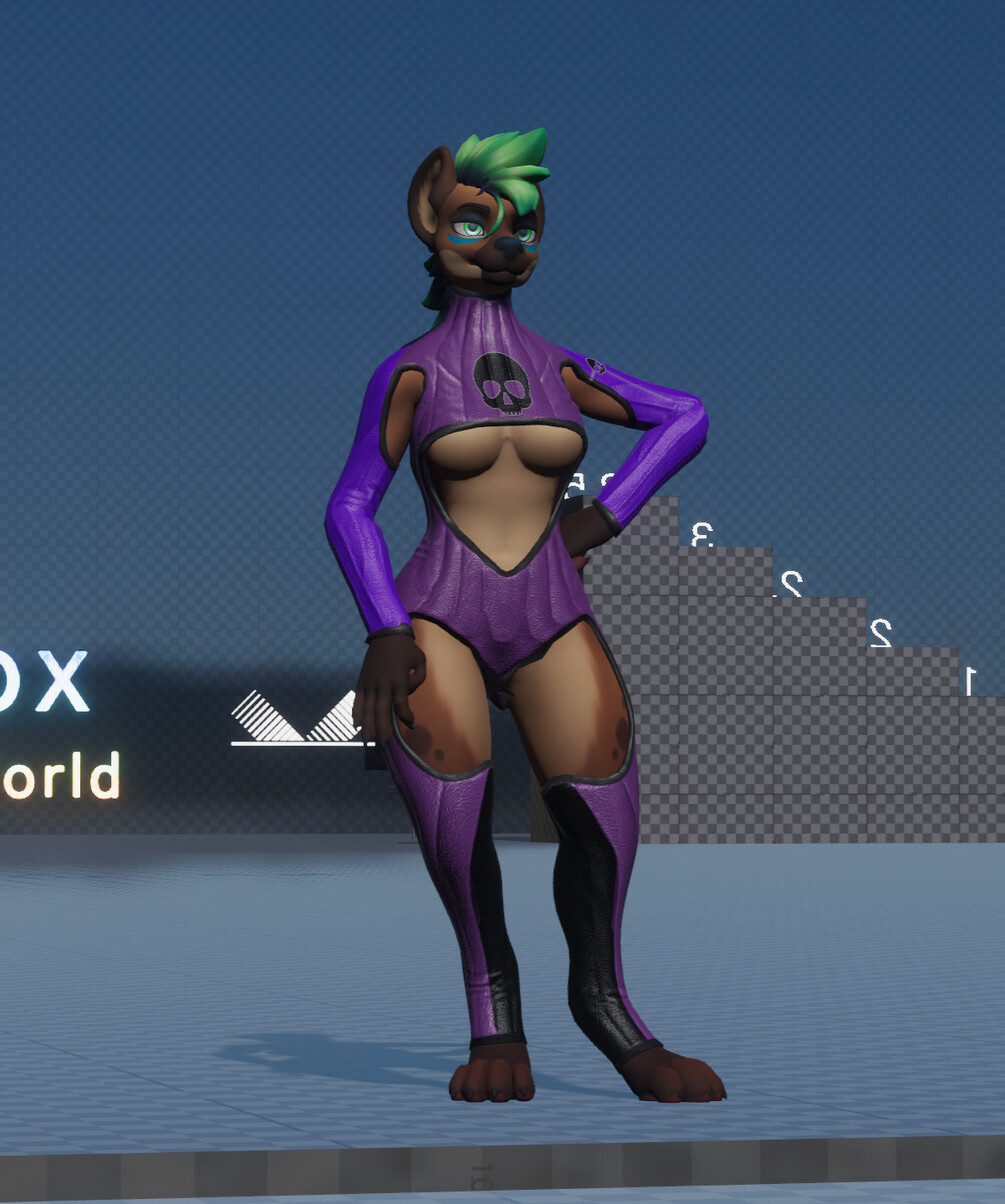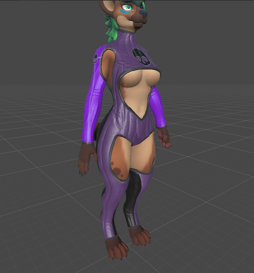 A nice full body, leathery looking outfit for your Hyenid, made from scratch and fitting to the Hyenid Avatar Base with the proper blendshapes and weight groups. With a custom shader for easy customization, detail normal mapping, decal placement and more!
