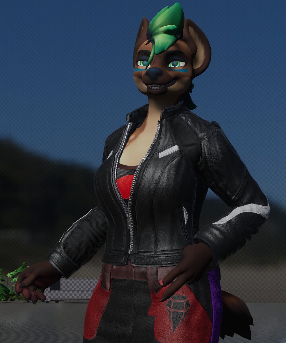 A protective and cool biker jacket for your Hyenid. Comes with two variants, one closed fully and one semi open. All made from scratch and fitting with the default blendshapes and weight groups.
