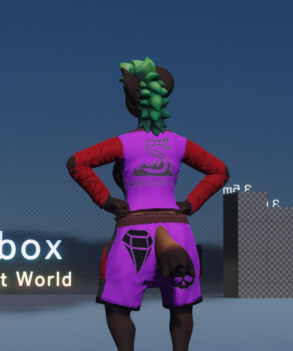 A long sleeve shirt for the Hyenid, made from scratch and using a custom shader for colour customization and decal placement.