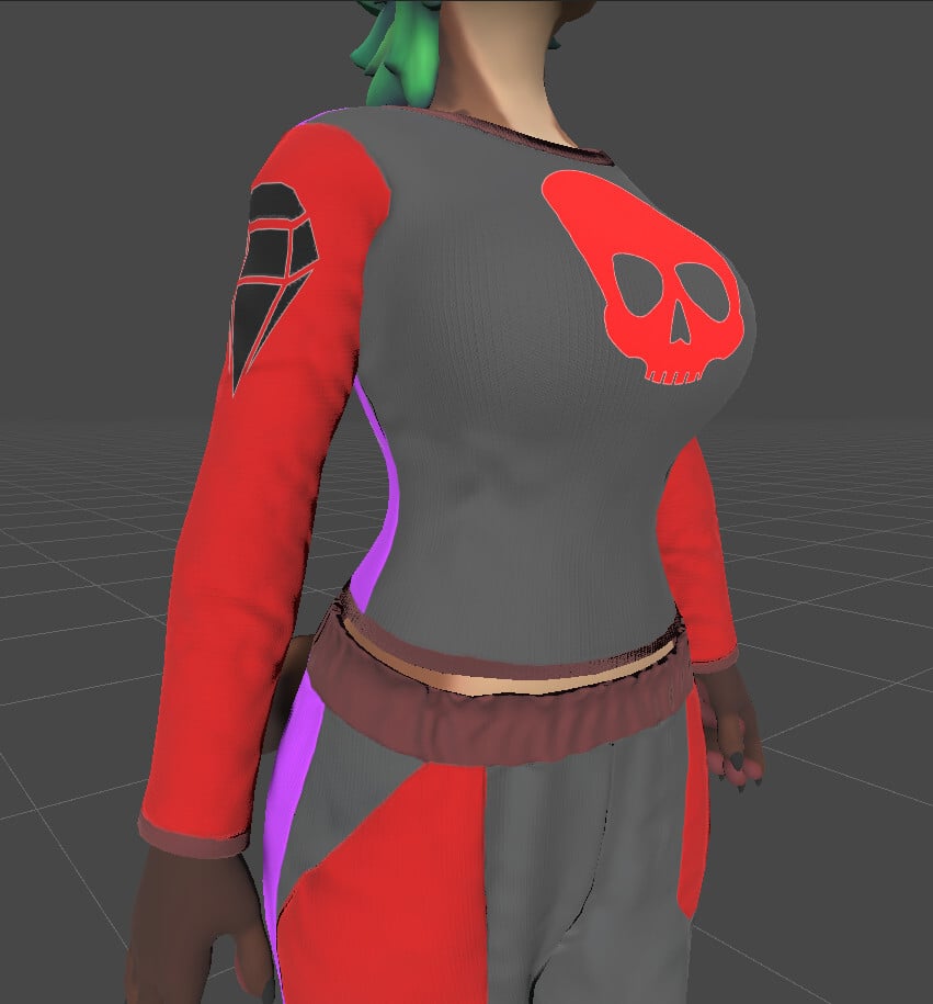 A long sleeve shirt for the Hyenid, made from scratch and using a custom shader for colour customization and decal placement.
