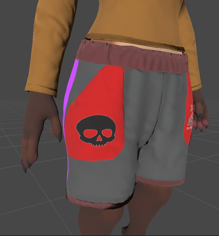 Some baggy shorts for the Hyenid, made from scratch with full customization, decals and colour zones. With all the default blendshapes and vertex groups already assigned for easy implementation for your avatar.